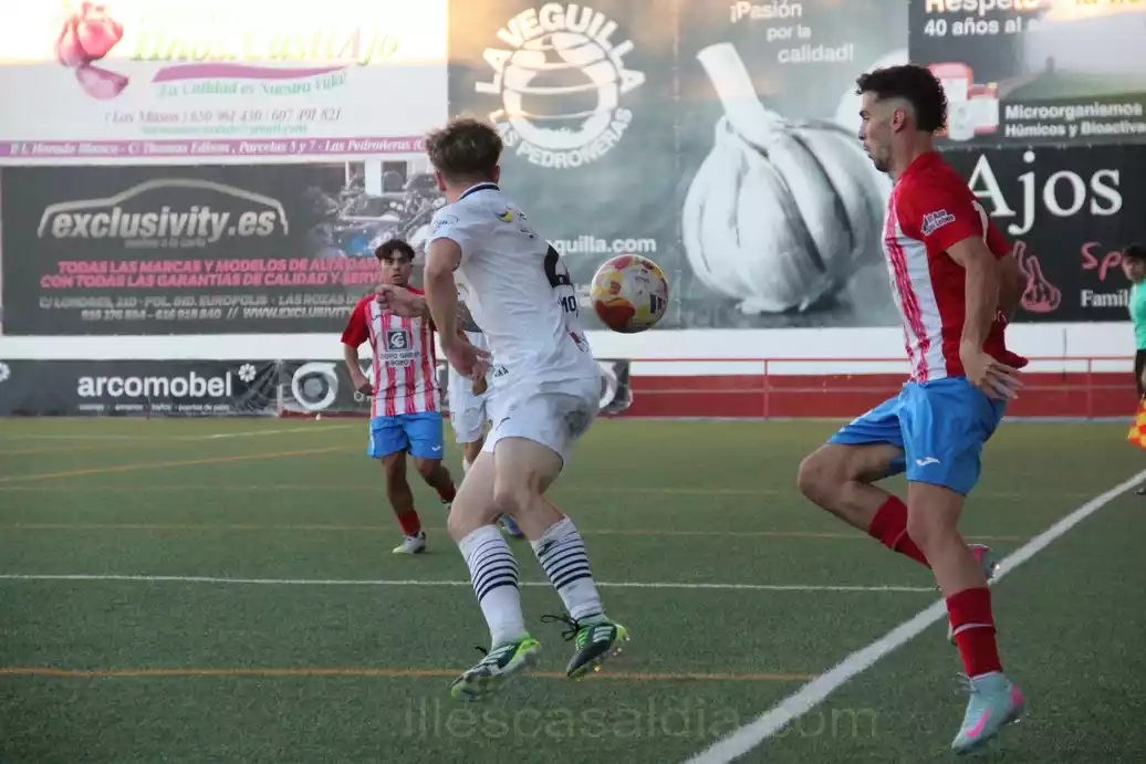 Empezaba la segunda mitad con los rojiblancos un poco «tocados» por el gol recibido y el Illescas puso entonces un punto más de intensidad y velocidad. Fruto de esto, en el 48 el illescano Hugo García ponía en franquía al equipo blanco. Y minutos más tarde los de Aroca reclamaban según ellos un penalti claro a su favor que el trencilla no señaló. Y además minutos después se quedaban con uno menos tras la segunda a Christian que fue muy protestada.