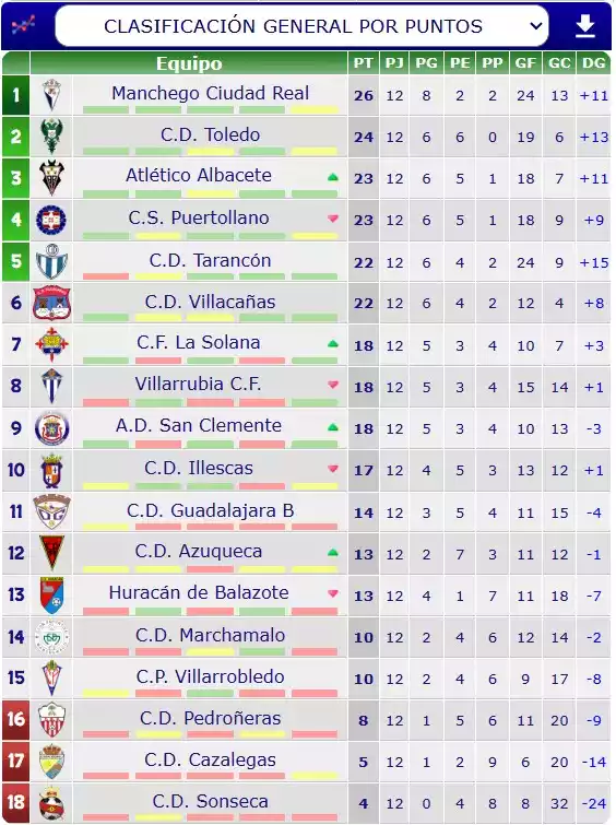 Clasificación Jornada 12 Tercera División Grupo XVIII