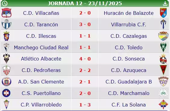 Resultados Jornada 12 Tercera División Grupo XVIII