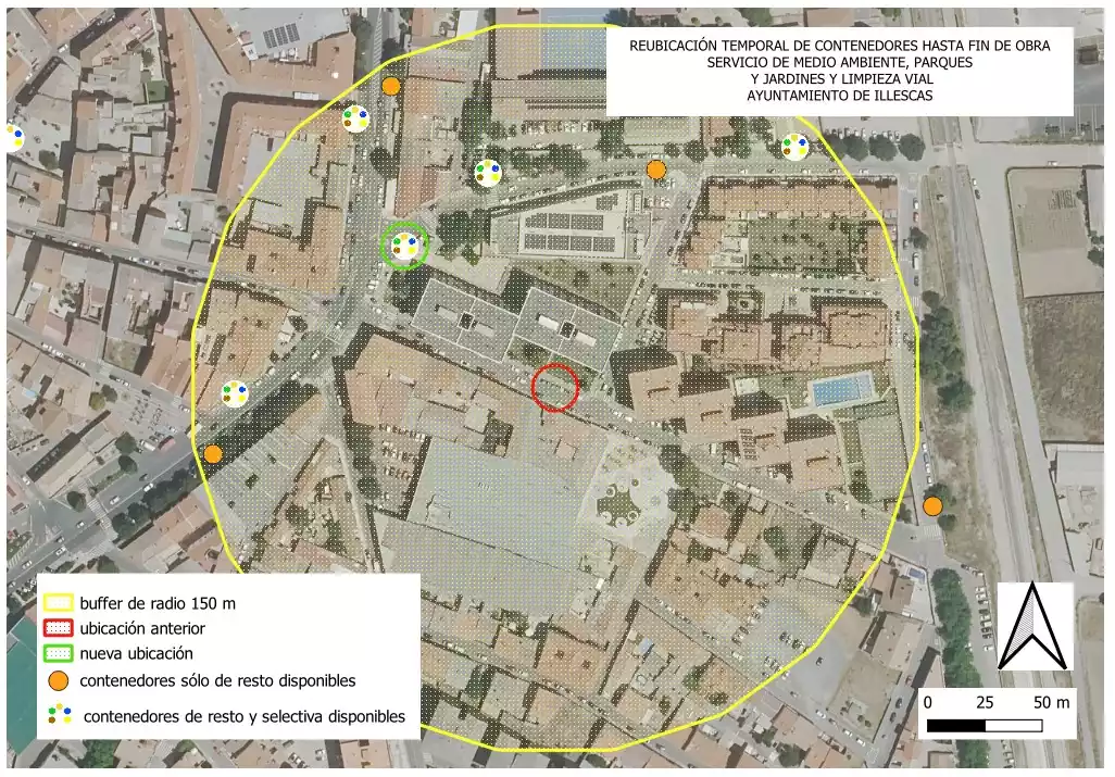 Con motivo de las obras que se están ejecutando en la calle Paseo de la Estación y aledañas, se se ha procedido a cambiar de sitio algunos contenedores de residuos.